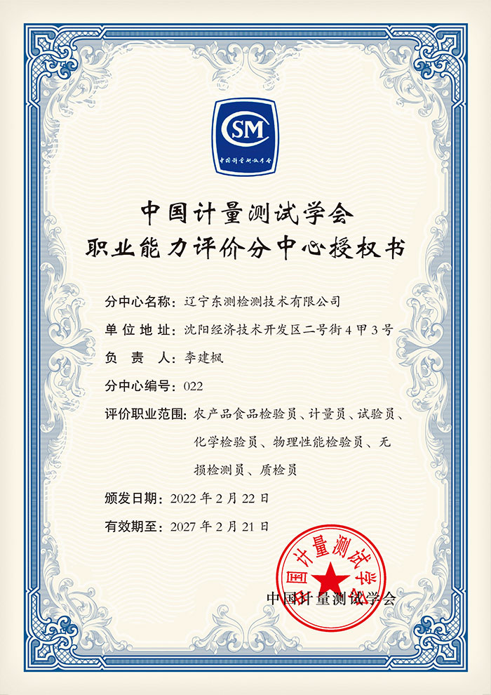 中國(guó)計(jì)量測(cè)試學(xué)會(huì)職業(yè)能力評(píng)價(jià)分中心授權(quán)書